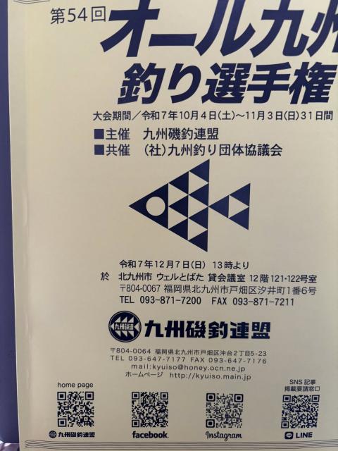 ALLKYUSHU FISHING FESTIVAL 第54回 オール九州釣り選手権 大会期間:令和7年10月4日(土)〜11月3日(日)31日間 主催 九州磯釣連盟 共催 (社)九州釣り団体協議会 令和7年度 九州磯釣連盟 第2回常任理事会 第54回オール九州釣り選手権